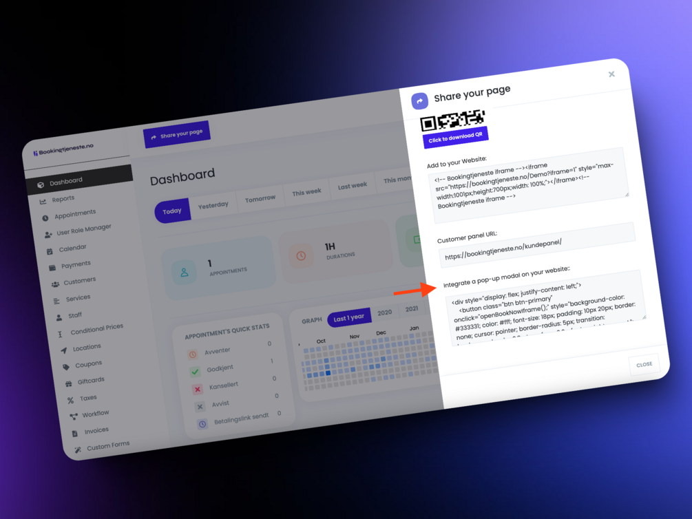 See live demo: https://bookingtjeneste.no/demo-popup-modal/